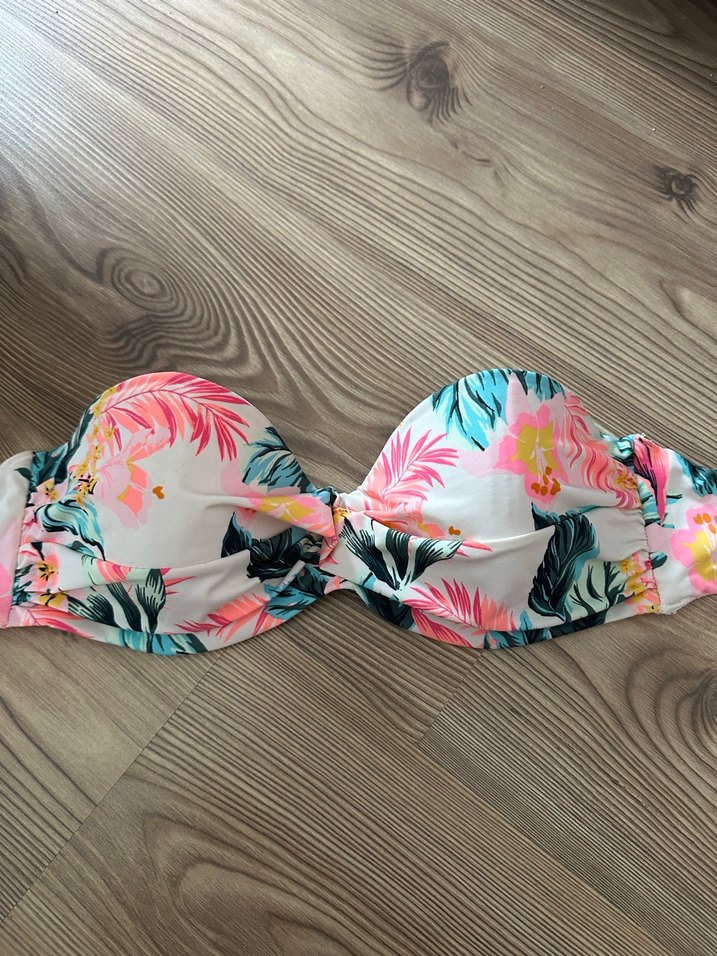 Çiçek desenli, pliseli ve ince askılı bu mini bikini üstü, bohem tarzı için uygundur.