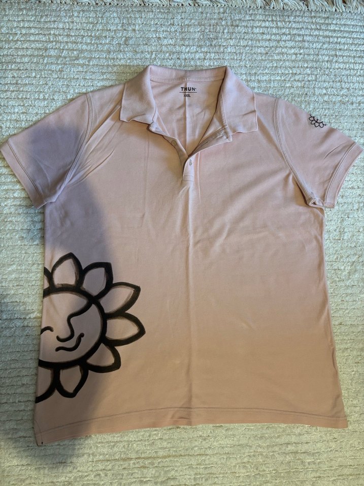 Pudra pembe renkli, kısa kollu, yakalı ve düğmeli polo yaka tişört. Çiçekli detaylara sahip, Yumuşak sentetik kumaştan üretilmiştir. Ürünün ölçüleri görselde belirtilmiştir. Defosu yoktur. Çoklu alımlarda indirim yapılabilir. Ürün hakkında herhangi bir sorunuz varsa mesaj atabilirsiniz