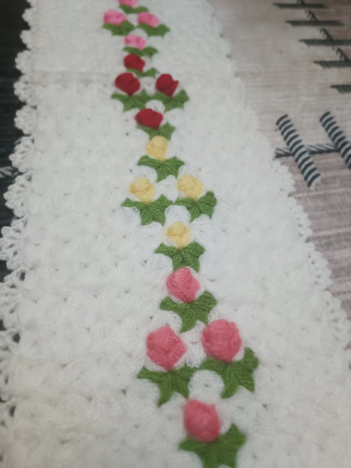 Beyaz zemin üzerinde kırmızı, sarı ve pembe çiçek desenli renkli banyo süngeri. Yumuşak dokusu ile nazik temizlik sağlar. istenilen renkte yapilir