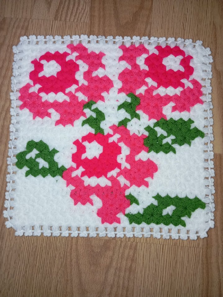 Bu renkli banyo süngeri, beyaz zemin üzerinde pembe çiçekler ve yeşil yapraklardan oluşan çiçek desenine sahiptir.