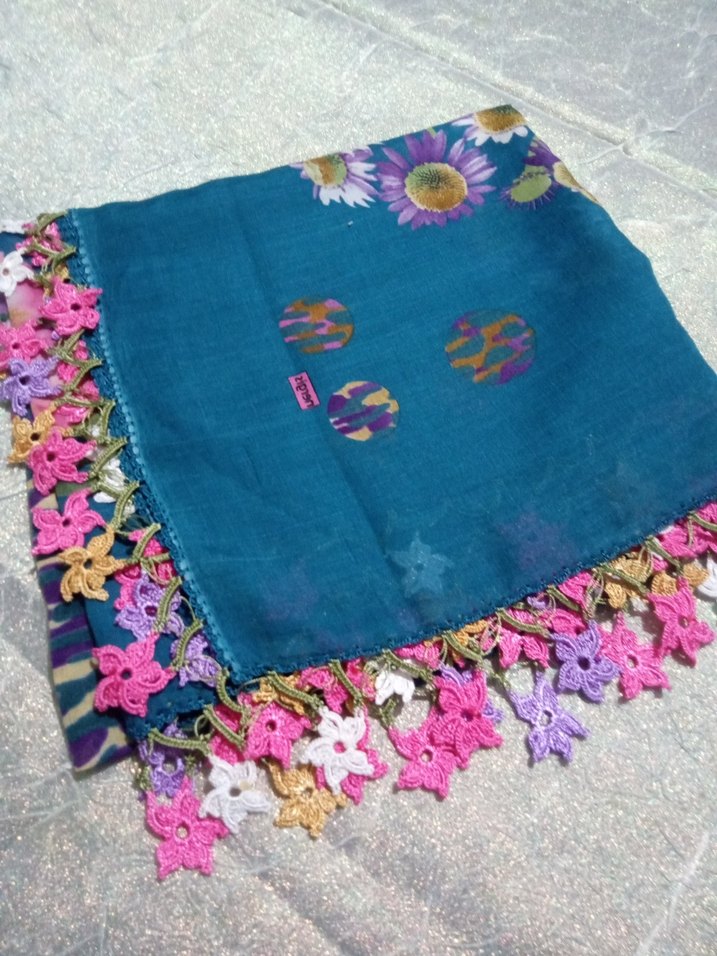 Çiçek desenli, renkli ve dantel detaylı kadın fularıdır. Canlı renkleriyle bohem tarzını yansıtır.