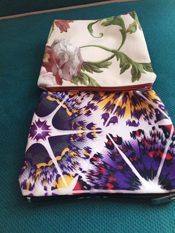 duck keten kumaştan yapılmış, çiçek desenli ve fermuarlı renkli bohem tarzda kadın makyaj çantası. Günlük kullanım için uygundur. astarlı fermuarlı#küçük çanta içi cüzdan#mor 18 *14 krem rengi 17*15 #el emeği # kendi dikimim.iki adet fiyatıdır