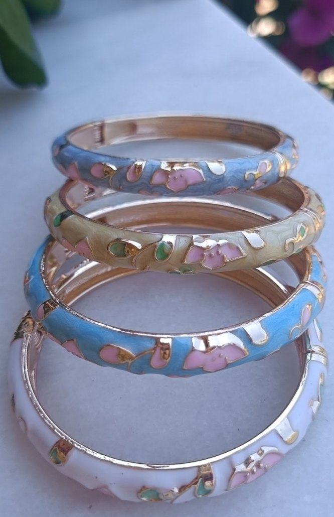 Pastel renkte, çiçek desenli ve boncuk detaylı vintage bohem tarzda bilezik seti, düğünler için uygun. Adet fiyatıdır lütfen stok sorunuz...