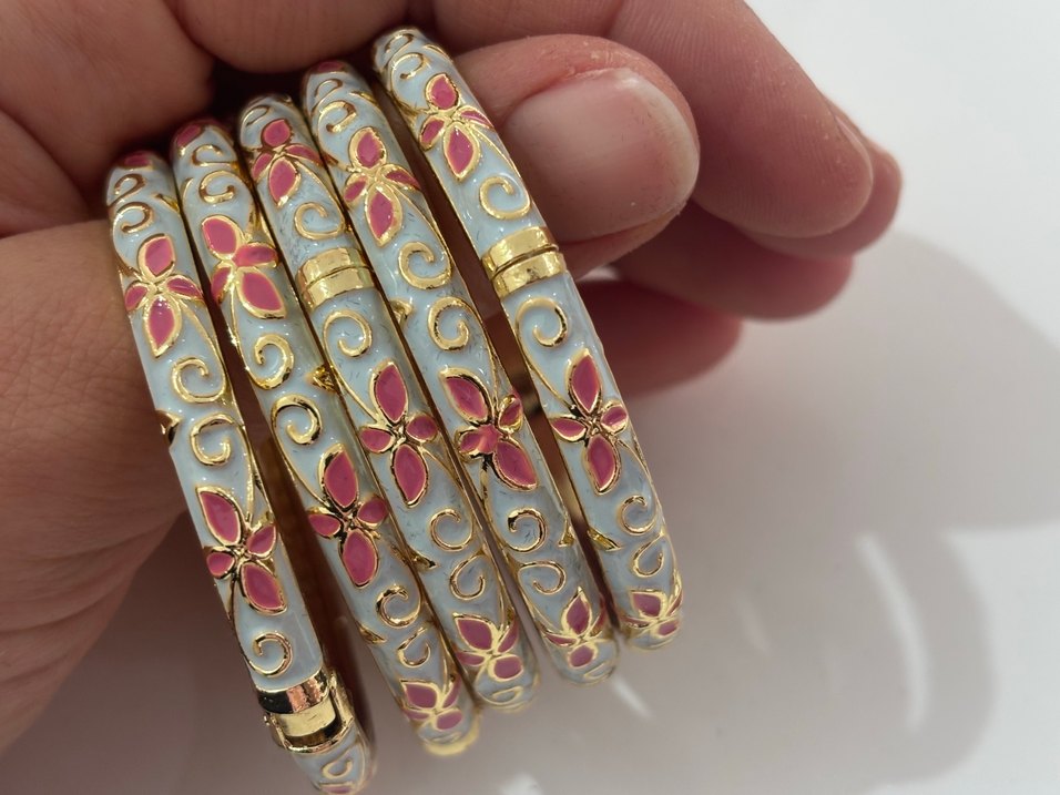 Çiçek desenli ve boncuk detaylı, renkli kadın bilekliği. Vintage bohem tarzını yansıtır, düğünler için uygundur.