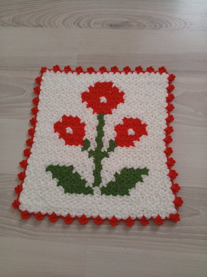 Çiçek Desenli Renkli el örgü ilif (cehizlik?)