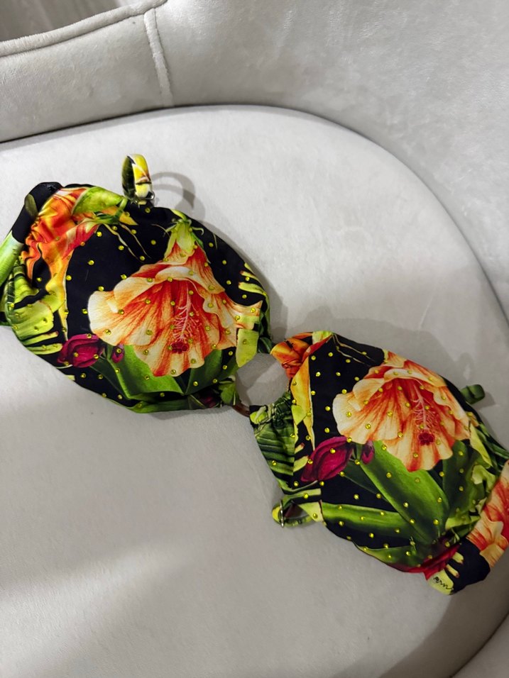 Çiçek Desenli taşlı Renkli Mini Bikini Üstü