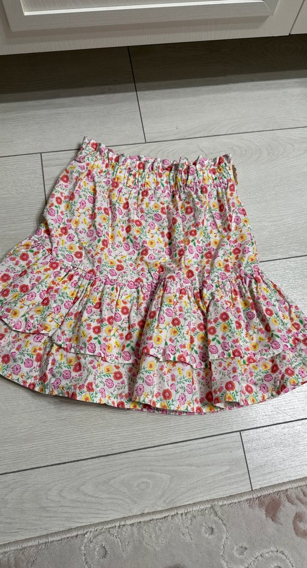 Renkli çiçek desenli mini etek, bol kesim ve fırfır detaylarıyla bohem tarz sunar. Yumuşak sentetik kumaştan yapılmıştır. 8-8 yaş LCW