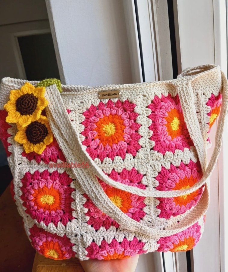 Renkli örgü malzemeden yapılmış, çiçek desenli ve dantel detaylı bohem tarzda günlük kullanıma uygun çanta. Etiket renk ve modellerimiz stoklara göre değişmektedir