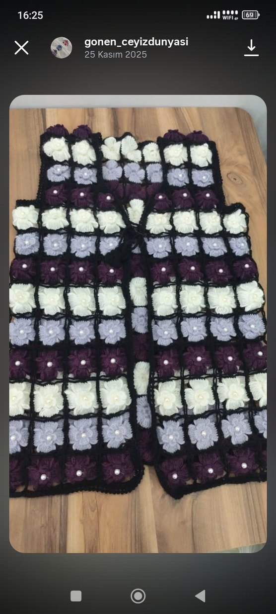 ,tek kaldı fiyat uygundur. çiçek motifli el örgüsü, kolsuz, tekne yaka ve normal kesime sahip kadın yelek.