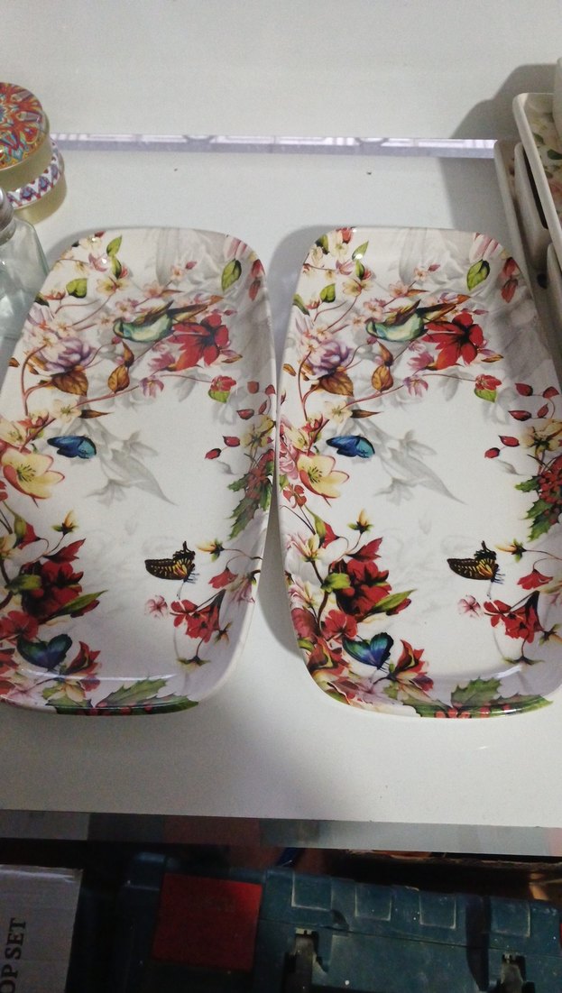Renkli ve çiçek desenli, kuş ve kelebek figürlü geleneksel tarzda tabak seti.