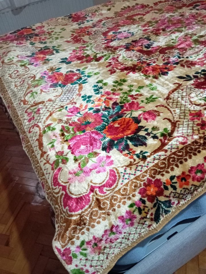 Bu battaniye, yumuşak kumaş üzerinde canlı çok renkli çiçek desenlerine sahiptir. Sıcaklık ve dekoratif bir dokunuş sağlar. irtu olarakta kullanılabilir