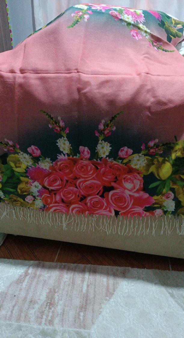 Renkli sentetik kumaştan, fırfırlı bohem çiçek desenli saç aksesuarı. Retro ve hippie tarzına uygun.