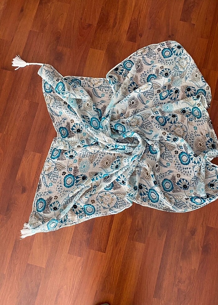93x93 cm uzunluğunda uçlarında püskülleri var
