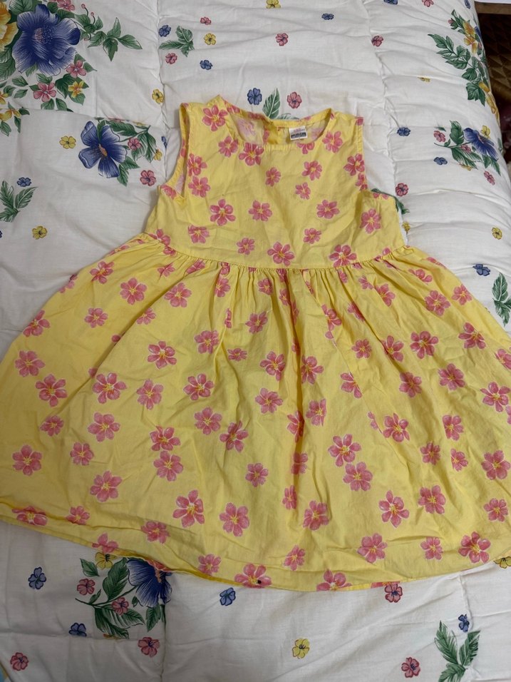 Çiçek Desenli Sarı Kız Çocuk Elbise
