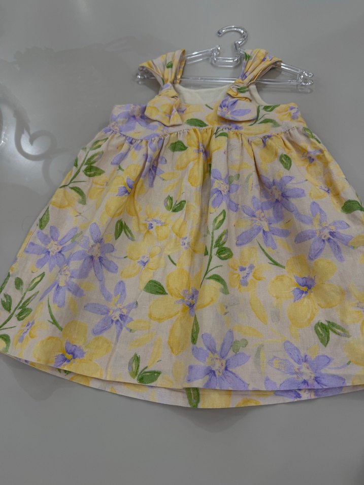 Çiçek Desenli Sarı Kız Çocuk Elbisesi