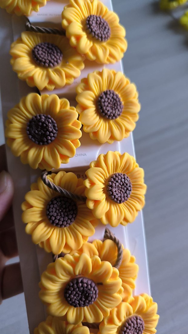 Sarı, elastik yapılı, ayçiçeği desenli çocuk saç tokaları, renkli bohem tarzı için uygundur .