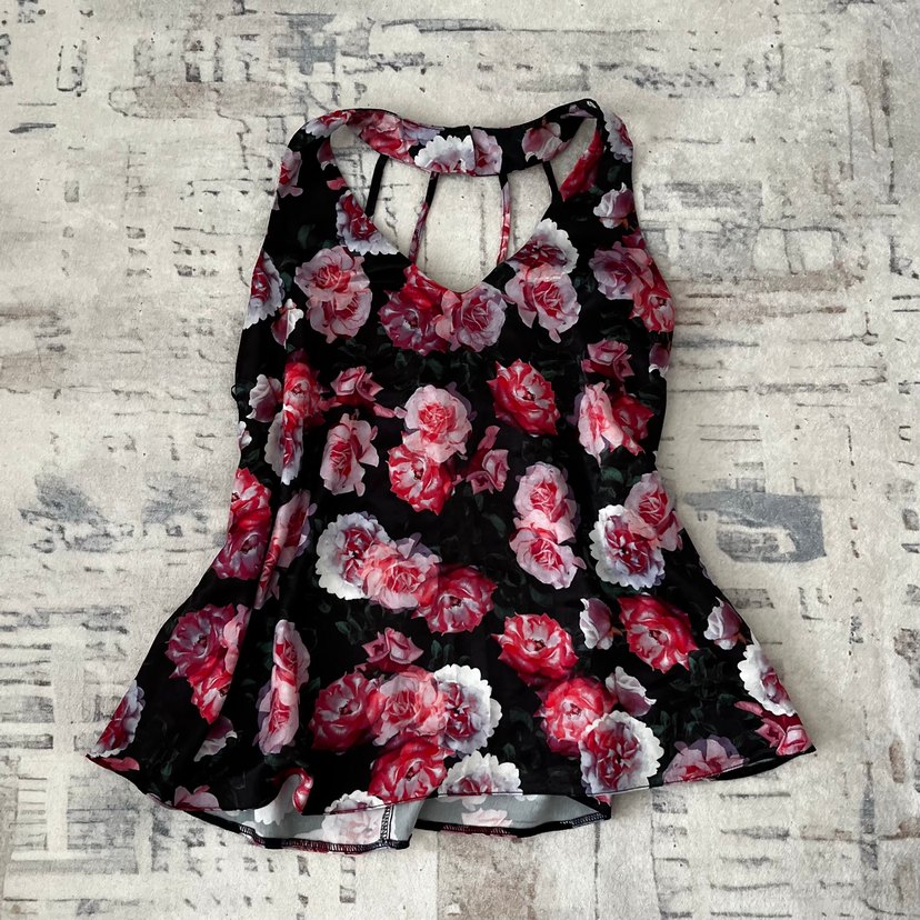 Çiçek desenli bol saten bluz. Gevşek kesim ve volan detaylıdır.