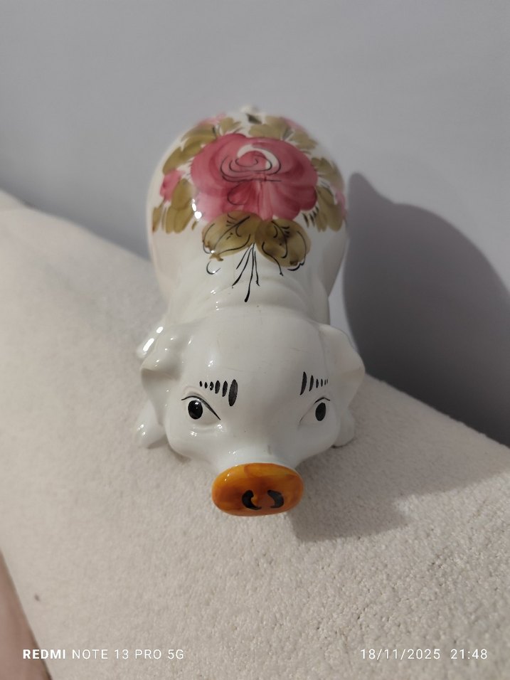 Pastel çiçek desenleriyle süslenmiş beyaz seramik biblo, zarif bir dekoratif detay sunar.