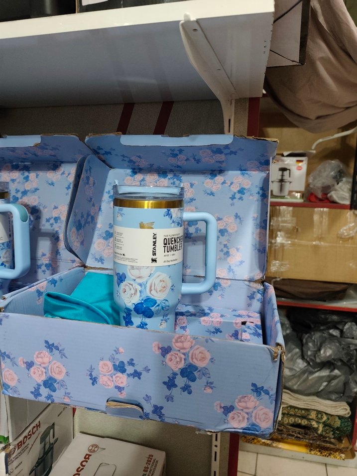 Mavi seramik kupa, çiçek desenli baskı ve saplıdır. Çiçek desenli kutusunda sunulur. Normal kesim ve kısa uzunluktadır. ☕
