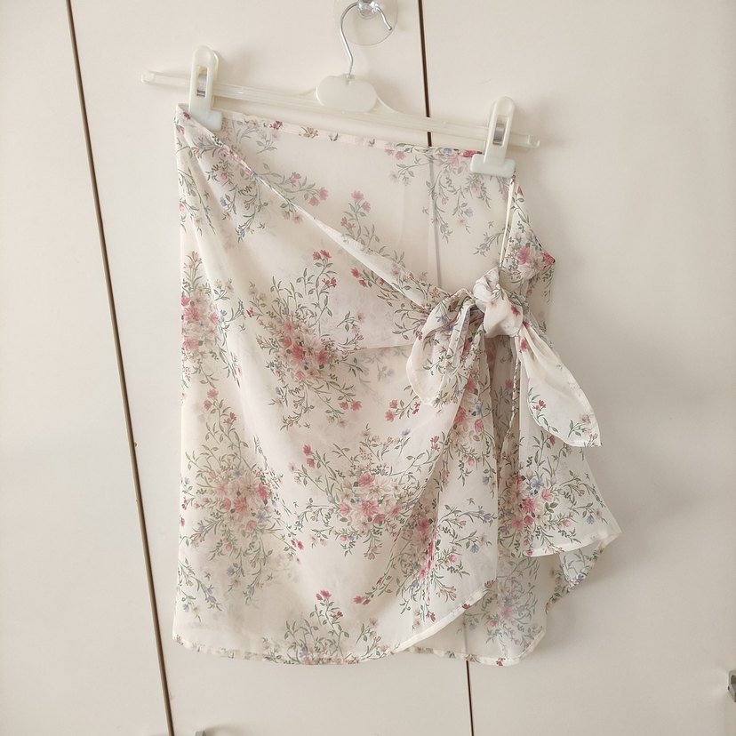 Çiçek desenli, şifon kumaştan yapılmış kadın pareo bohem tarzı yansıtıyor. marka temsili.