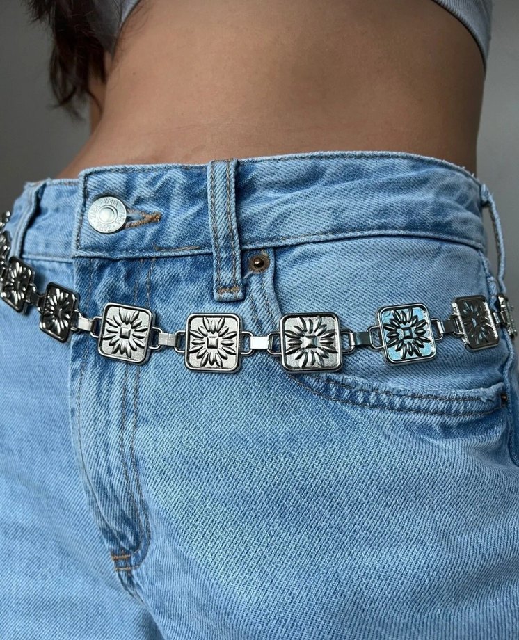 Çiçek Desenli Silver Zincir Kemer