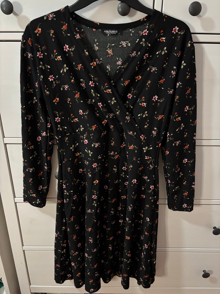 Çiçek desenli, V yakası olan, uzun kollu elbisee. 1-2 kere giyildi hiçbir sorunu yokk