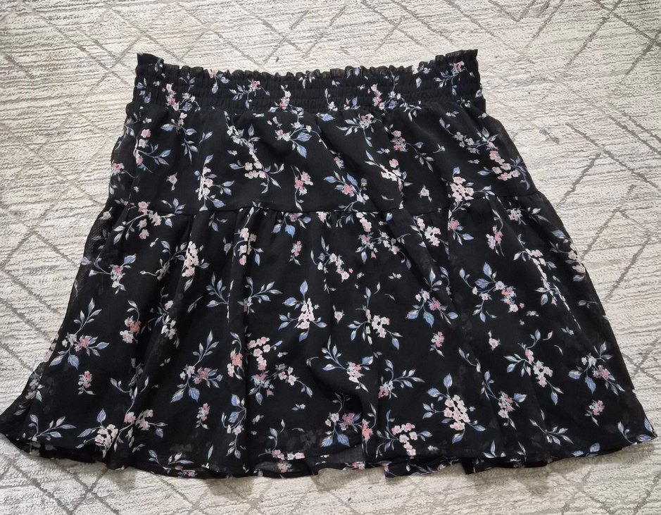 Bu siyah midi etek, çiçek desenli ve fırfırlı tasarımıyla, rahat kesimde ve sentetik pürüzsüz kumaştan üretilmiştir. Günlük kullanıma uygundur. beden bana olmadigi icin satiyorum hic bir sorunu yok