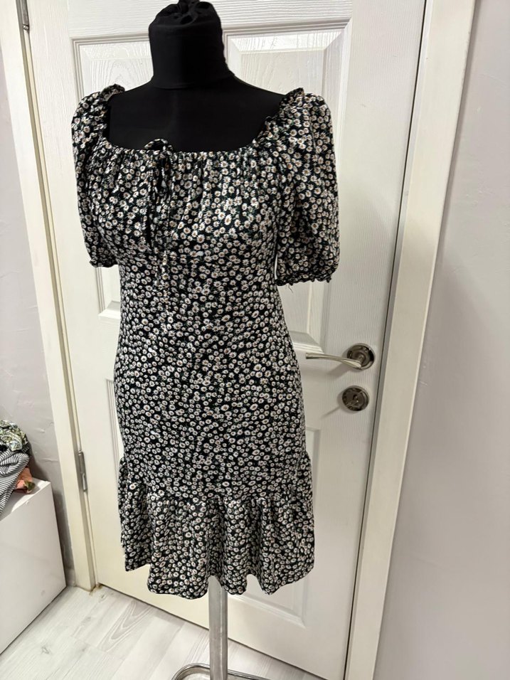 Çiçek Desenli Siyah Mini Elbise ³6 beden