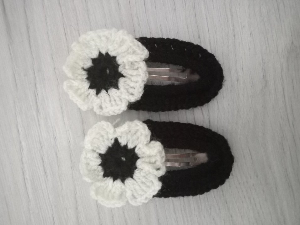 Çiçek Desenli Siyah Örgü Çocuk Toka