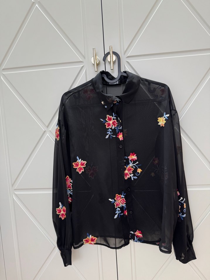 Çiçek Desenli Siyah Uzun Kollu Gömlek