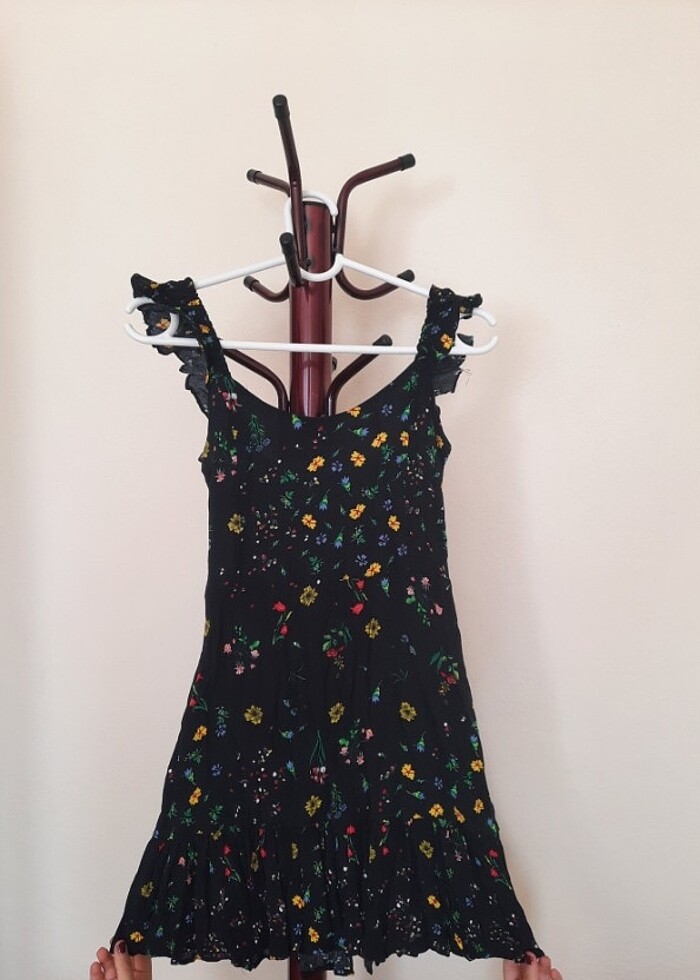 Çiçek desenli siyah yazlık elbise