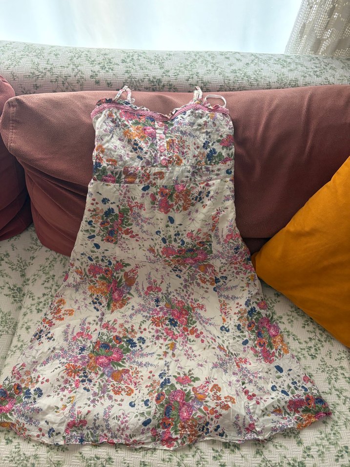 Dantel detaylı, straplez ve askılı uzun elbise. Pastel tonlarda çiçek desenli, bohem tarzda, düğün için uygun bir modeldir.
