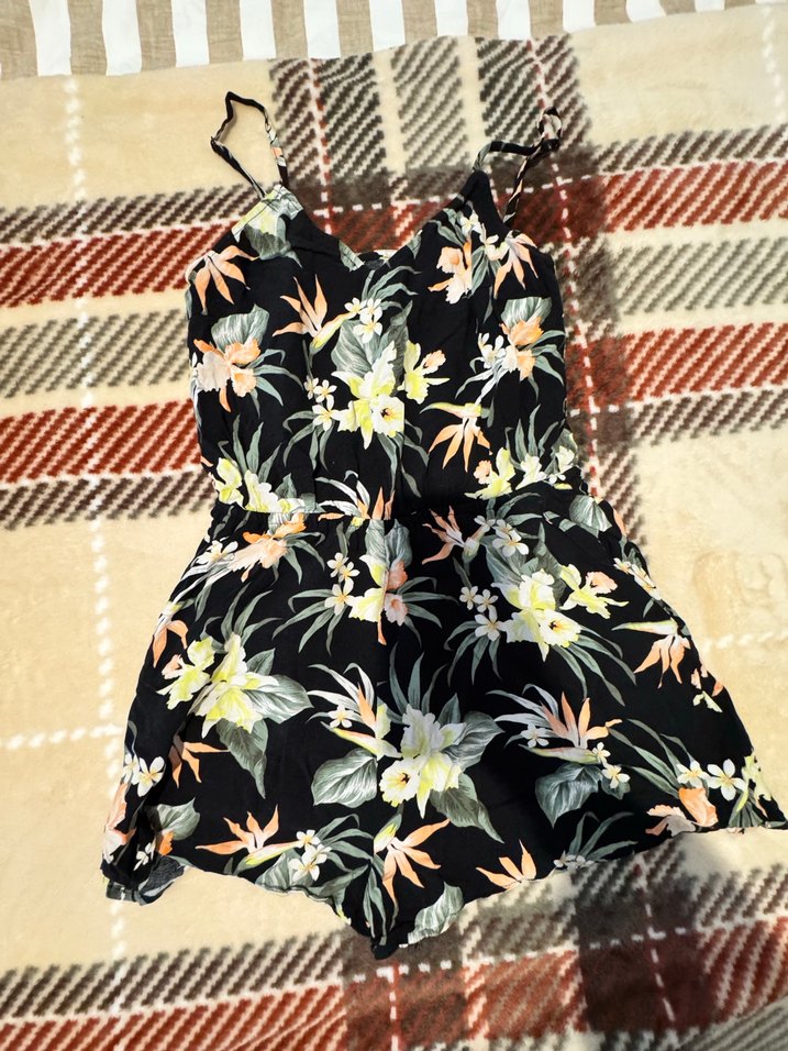 Kadınlar için çiçek desenli, straplez mini tulum. Bol kesim, ince askılı ve fırfır detaylı bohem tarzda. Çok renkli ve koyu tonlarda.