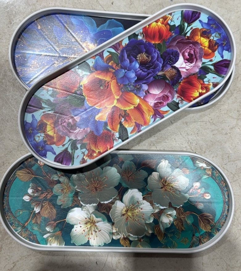 Çok renkli çiçek desenli sunumluk tepsi ✨
