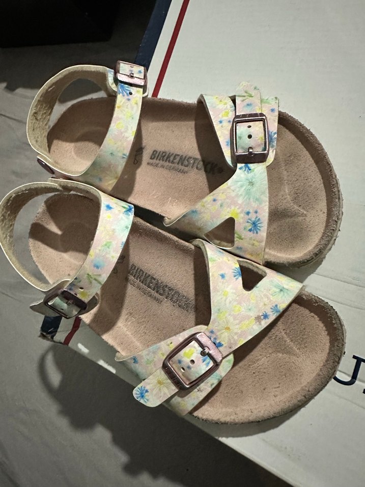 Bohem tarzda, ayarlanabilir tokalı bantlara sahip, pastel çiçek desenli kız sandaletleri. Rahat tabanıyla retro bir hava sunar. Bi iki kez giyildi yeni ve sorunsuz