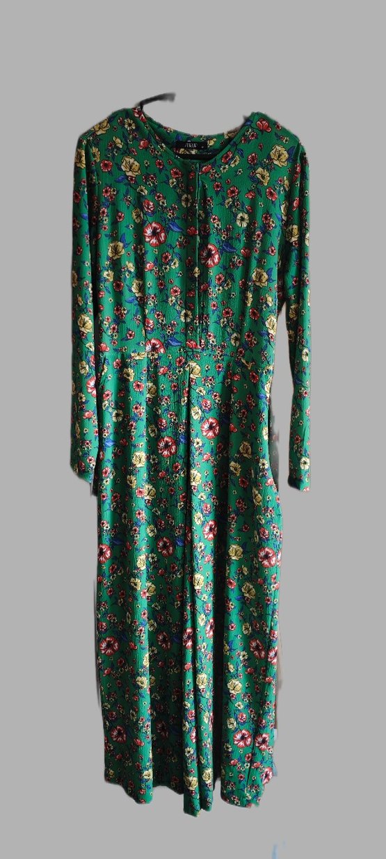 Çiçekli tulum. yandan fermuarlı, Kemerli ve tarafı düğmeli tulum. fotoğraflarda da detaylı gösteriliyor.