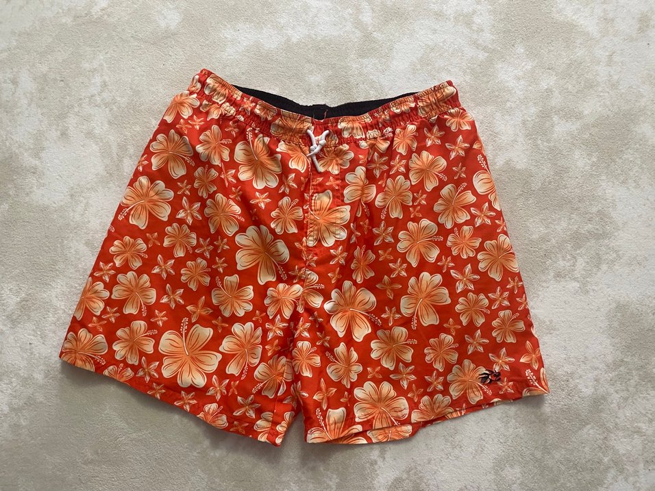 Rahat kesim, çiçek desenli turuncu erkek mini mayo,bağcıklı bel ile plaj ve sokak stiline uygun. Hasarı yoktur , orjinaldir, beli 40 , boyu 45 cm dir , l bedendir , iade yoktur.