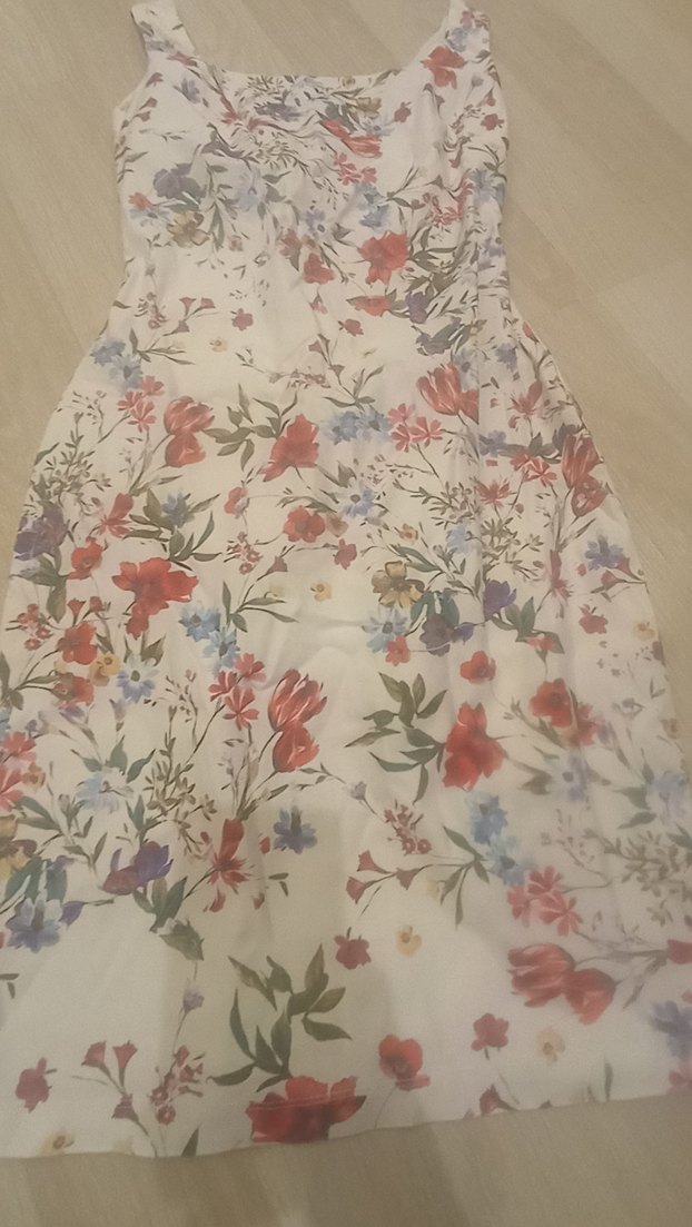 Çiçek desenli, kısa askılı olan bu elbise, fit kesimi ve drapeli ile bohem tarzı yansıtıyor. Çok renkli ve hafif dokulu kumaş kullanılmış.