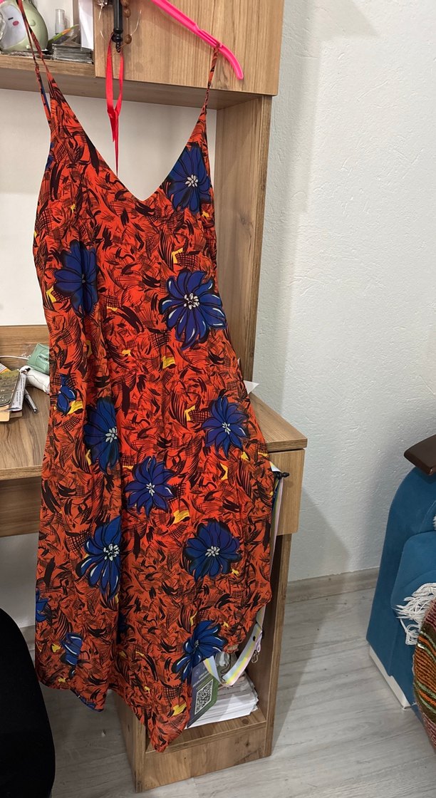 Kadınlar için straplez, kolsuz, bol kesim uzun elbise . Canlı koyu renkli çok renkli çiçek desenli, bohem tarzda drapeli tasarım.
