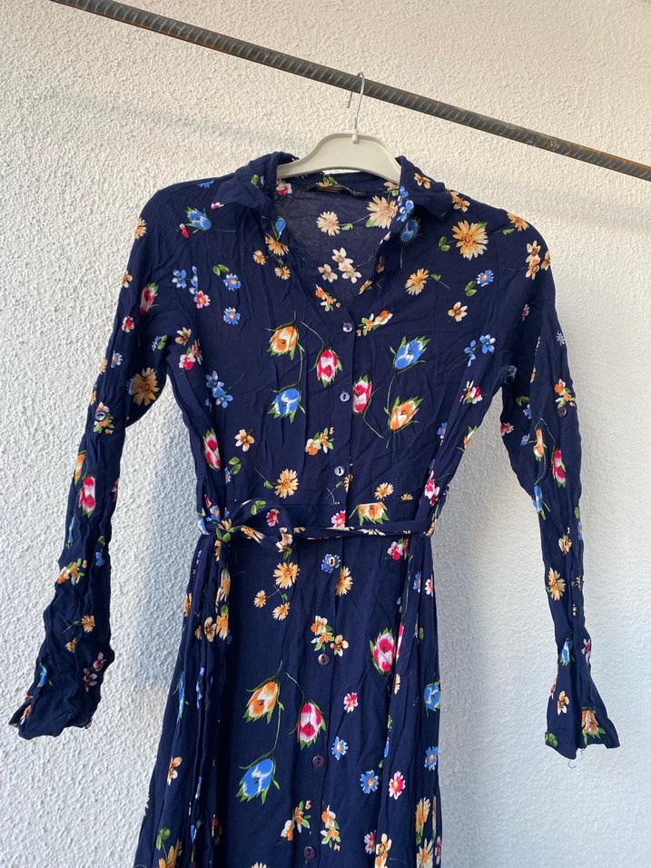 Çiçek desenli, uzun ve bol kesim bu elbise, yakalı ve düğmeli ön tasarıma sahip, yumuşak dokulu kumaştan üretilmiştir.