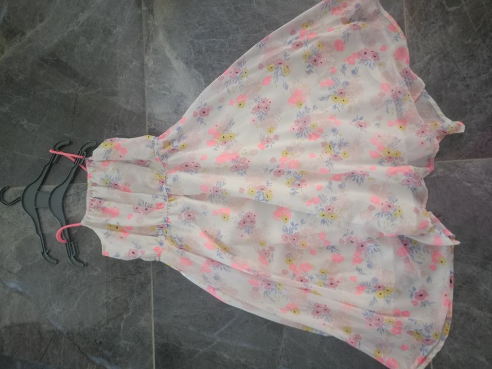 Yumuşak sentetik kumaştan, çiçek desenli, volanlı, askısız ve salaş kesim uzun elbise. Açık hava etkinlikleri için uygun.