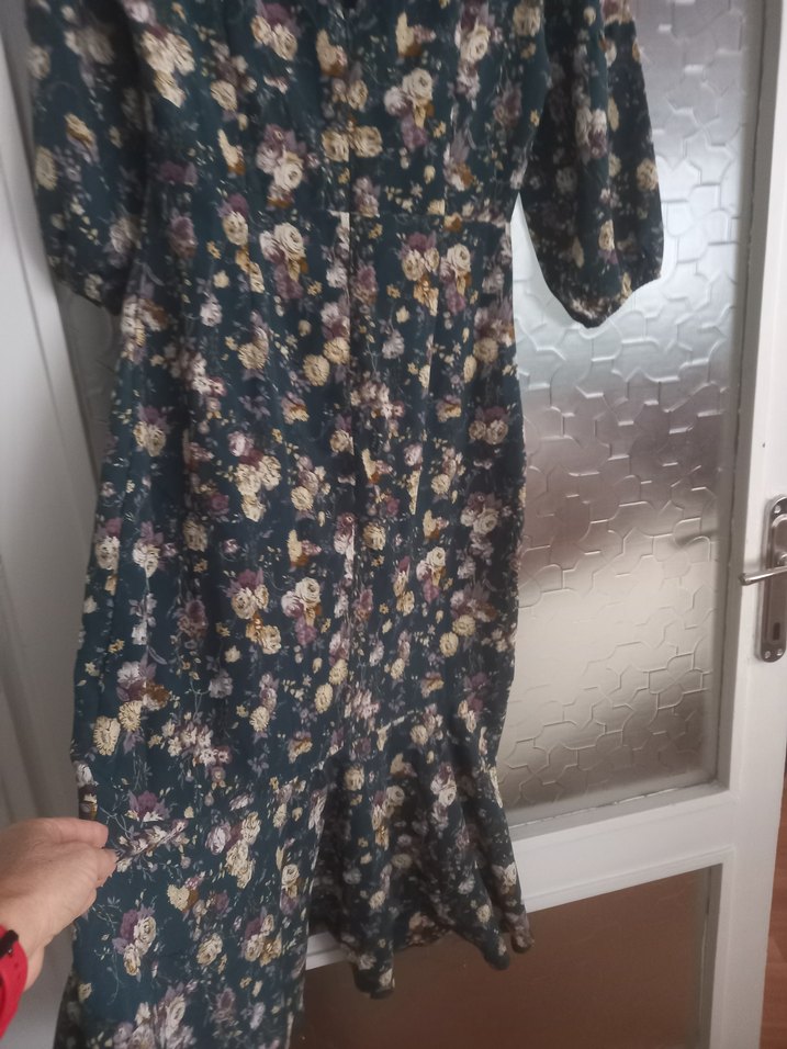 V yaka ve uzun kollu, çiçek desenli koyu renkli, bohem vintage tarzda, dar kesim uzun elbise. londradan alindi hic giyilmedi sorunsuzdur.