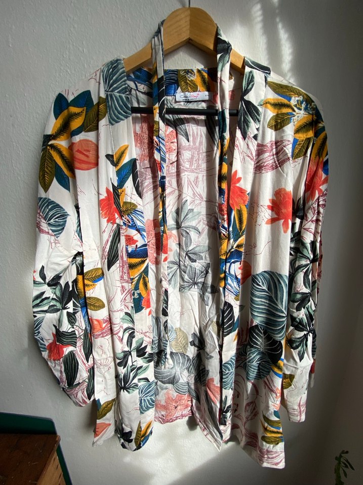Yumuşak sentetik kumaştan, uzun ve bol kesimli, çiçek desenli Çiçek Desenli Uzun Bohem Kadın Kimono kadın kimono. Uzun kollu ve drapeli tasarımıyla bohem tarzı yansıtıyor. Kuşak detaylı ve tertemiz