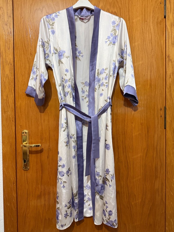Uzun, bol kesim kadın sabahlık. Pastel bej üzerinde çiçek desenli, askılı kollu ve vintage bohem tarzda, kuşaklı. Ürün sadece birkaç kez giyildi temiz hiçbir kusuru yok çok uygunu bırakıyorum S & M bedenlere uygundur. Üzerinizde çok güzel duruyor