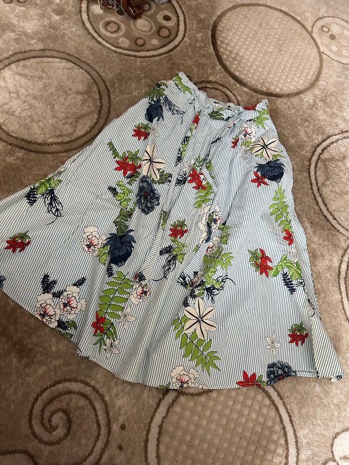 Çiçek Desenli Uzun Bohem Pilili Etek