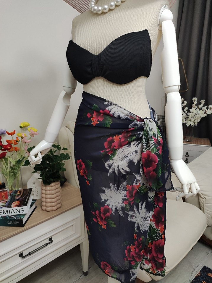 Çiçek Desenli Uzun Drapeli Kadın Pareo