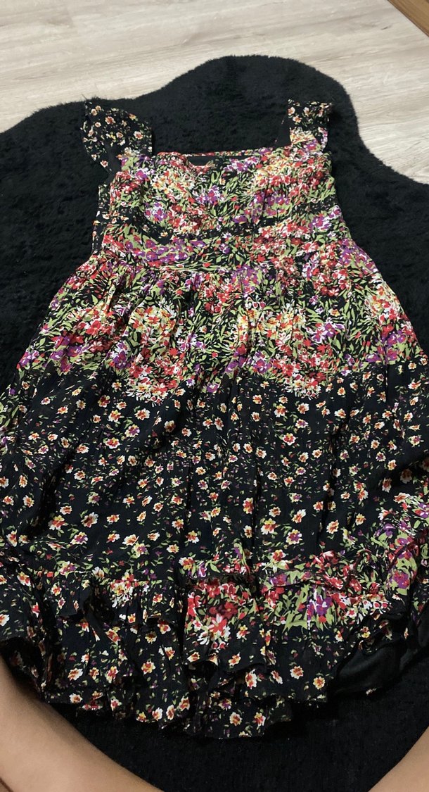 Çiçek desenli, bol kesim ve fırfır detaylı uzun hamile eteği, koyu renkli çok renkli kumaştan yapılmıştır, bohem tarzını yansıtır .