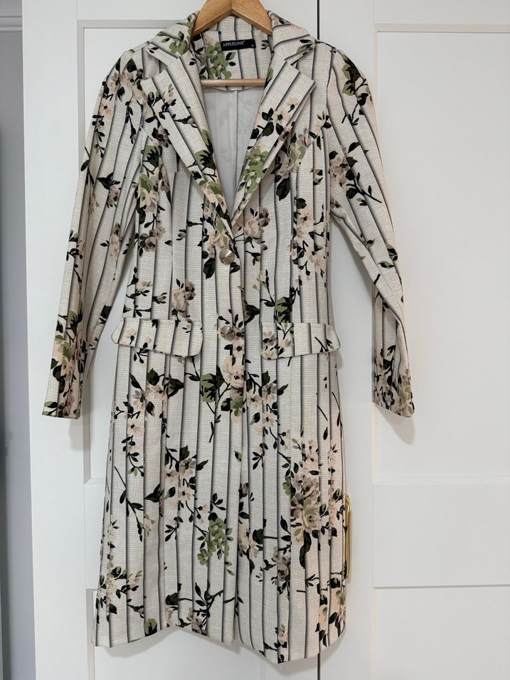 Çiçek ve çizgili desenli, düğmeli, uzun kol ceket temiz kullanıldı