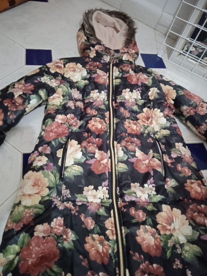 Çiçek Desenli Uzun Mont Kapüşonlu
