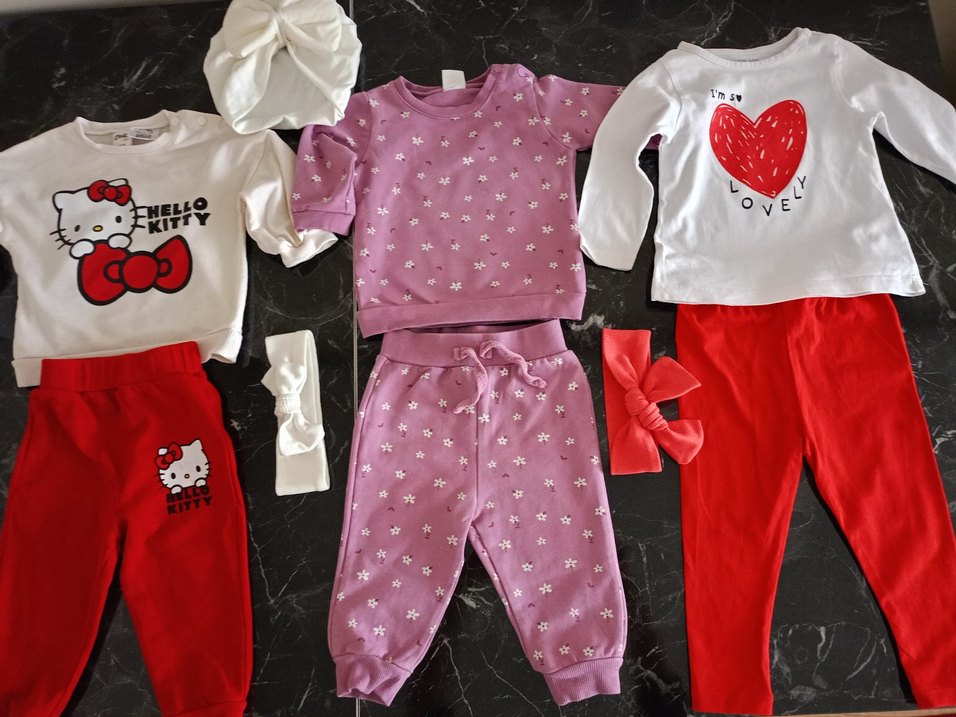 Pembe renkli, uzun kollu üst ve çiçek desenli pantolondan oluşan bebek kıyafet seti. Yumuşak kumaşıyla rahat ve renkli bir şıklık sunar. ikisi civil biri LCW kiki birinin yakasında hafif leke var resimde gözüküyor hepsi tek fiyat bandana larda dahil
